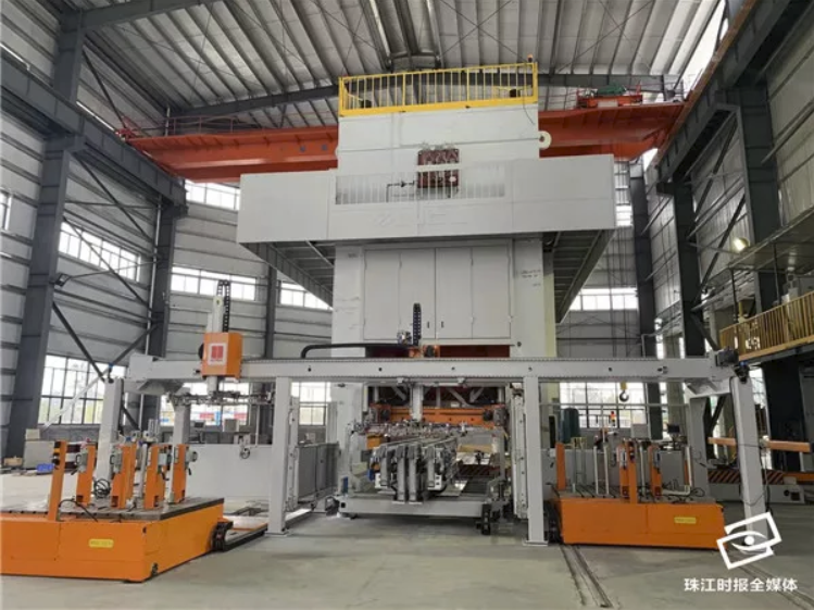 在里水本土企業(yè)佛山市南海德展鈑金有限公司(下稱“德展鈑金”)生產車間,一臺自動化設備800T汽配多功位沖壓線正在忙碌著,為零件沖壓一分鐘可達三十沖次,而且一鍵換模6-7分鐘即可完成,比手動換模節(jié)約80至110分鐘以上。這臺自動化設備,大大提升了該企業(yè)的生產效率,減少對工人依賴。